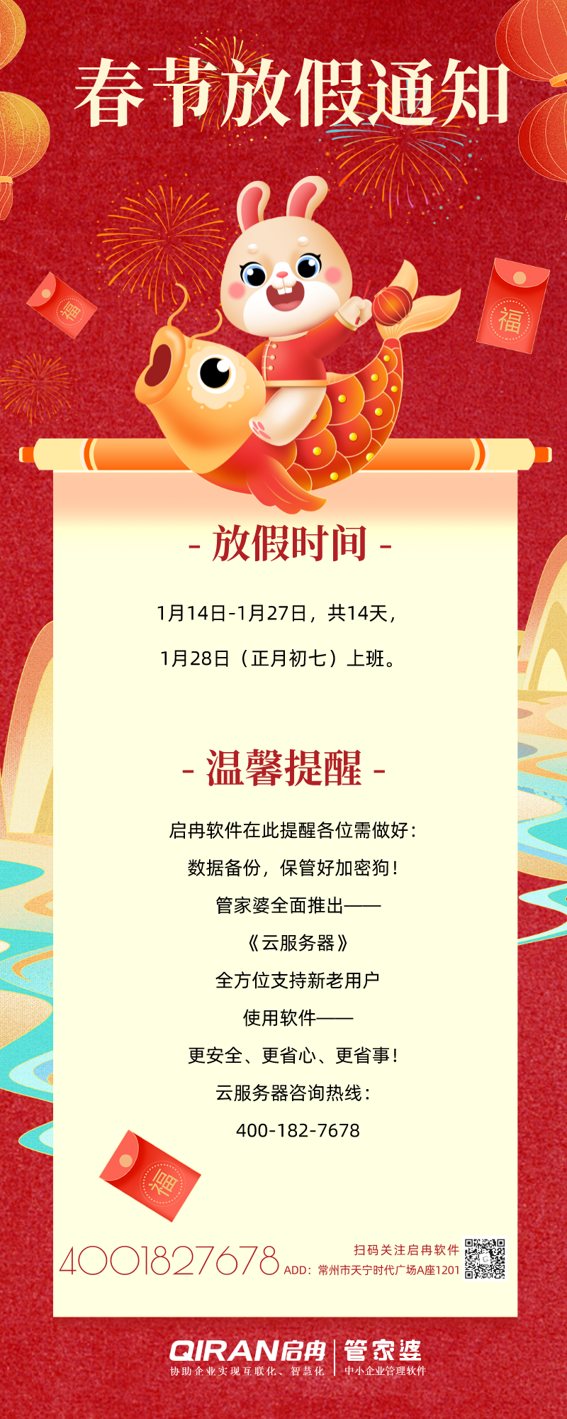 【啟冉軟件】公告 | 春節放假通知