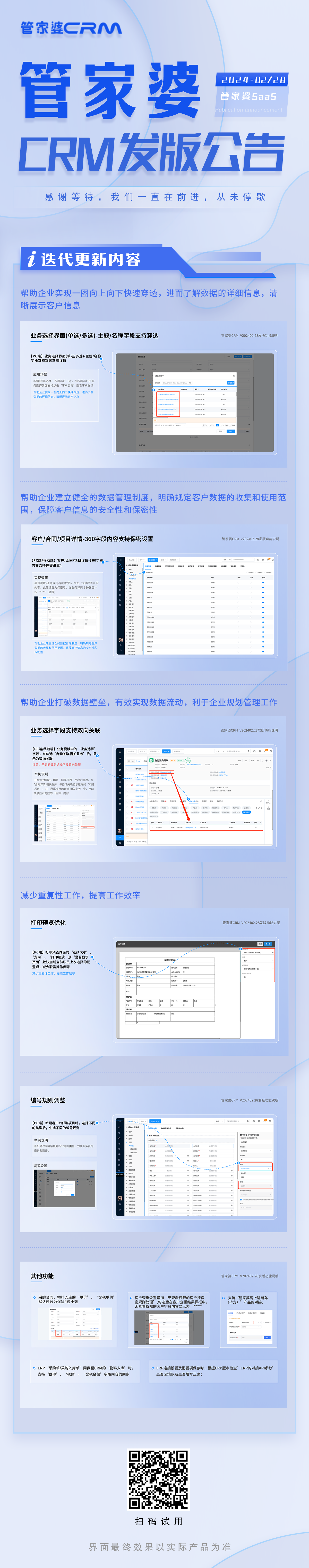 2024年2月28日,管家婆CRM常規發版,本次發版為了滿足企業的需求,此次功能升級、更新后: