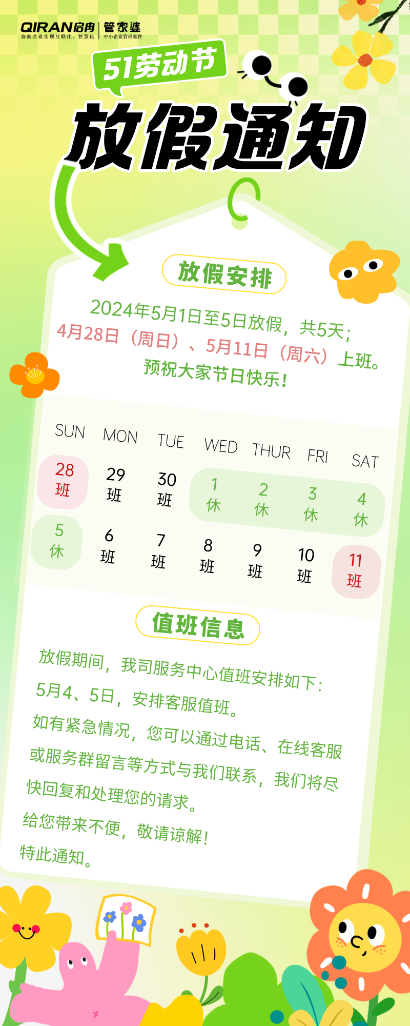 公告 | 啟冉軟件勞動節放假通知
