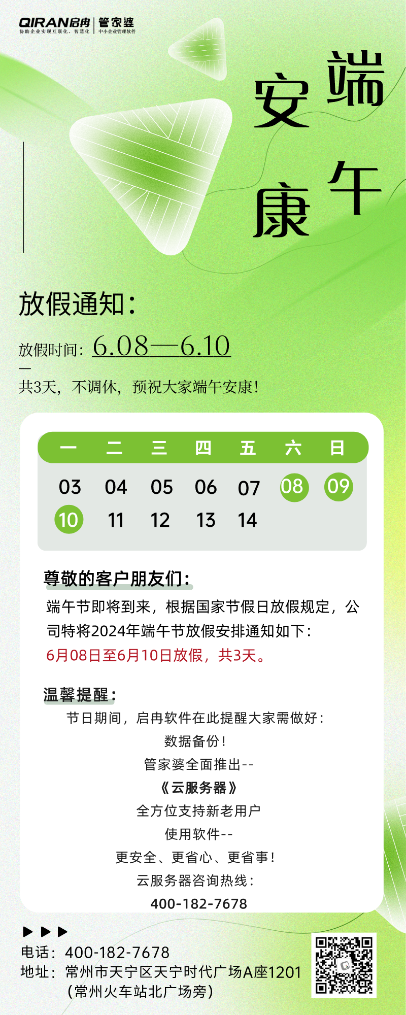 公告 | 啟冉軟件端午節(jié)放假通知